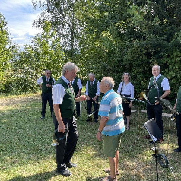 Mit seinen Gästen und den Jagdhornbläser des HR Gengenbach wurde an der Fischerhütte am Ziegelwaldsee gefeiert. Jagdliche Musik passte bestens für den Anlass, war Max doch 30 Jahre lang selbst aktiver Bläser. Wir wünschen ihm weiterhin Gesundheit und Weidmannsheil!